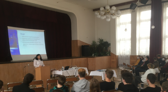 Na konci ledna jsme měli možnost přivítat ve společenském sále školy Ing. Švecovou z Fakulty informatiky a managementu, Univerzity Hradec Králové, která rovněž spolupracuje s Národním úřadem pro kybernetickou a informační bezpečnost. Paní inženýrka připravila pro naše studenty oboru Mechanik elektrotechnik poutavou přednášku na téma Aspekty kybernetické bezpečnosti v digitálním prostředí. Přednáška bezmála devadesáti posluchačům osvětlila ukotvení problematiky kybernetické bezpečnosti v legislativním rámci ČR a EU. Dále popisovala hrozby spojené s užíváním technologií a analyzovala některé bezpečnostní incidenty. Na závěr přednášky lektorka odpovídala na dotazy a rozebírala s našimi studenty jejich zkušenosti z online světa. Osvěta v oblasti rizik nových technologií je zcela jistě příspěvkem ke zvýšení bezpečnosti jejich používání. Pro některé naše studenty a studentky to rovněž byla ukázka kybernetické bezpečnosti jako možného oboru dalšího studia, či budoucího profesního zaměření. Závěrem bych rád paní inženýrce poděkoval za zajímavou přednášku a poskytnuté materiály, které zkvalitní výuku tohoto tématu na naší škole. Přednášky odborníků, kteří umí teoretické poznatky vysvětlovat na praktických zkušenostech, jsou ideálním doplňkem a skvělým zpestřením výuky. Těšíme se na další odbornou přednášku!
