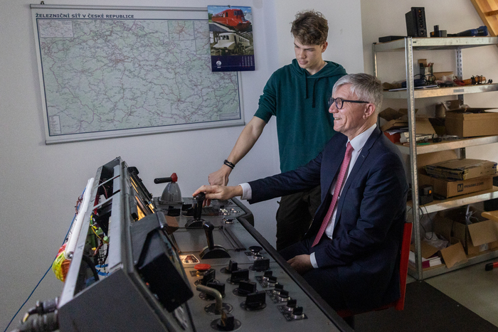 S ředitelem školy Janem Kovářem a dalšími pedagogy debatoval o odborném školství, duálním vzdělávání, spolupráci s firmami, ale také o novinkách v našich oborech IT, Elektrotechnika a Doprava. Ocenil odbornou přípravu našich studentů učebních oborů, propojení školy s regionálními podnikateli i modernizaci výuky. Prohlédl si Centrum síťových technologií a hardwaru, modelové kolejiště s řízením provozu a vyzkoušel trenažer lokomotivy.