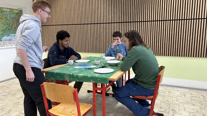 Každý tým si vymyslel název pro svou restauraci a vytvořil jídelníček. Pak už stačilo prostřít stůl, navodit ve třídě tu správnou atmosféru a večeře či oběd v restauraci mohly proběhnout. Číšník přivítal své hosty, a ti si pak užili imaginární jídlo, vyzkoušeli roli hladových kamarádů, zákazníků restaurace. Rozhovor vždy probíhal ve dvou rovinách: zákazníci – číšník a zákazníci mezi sebou.