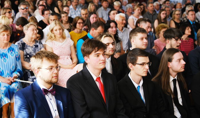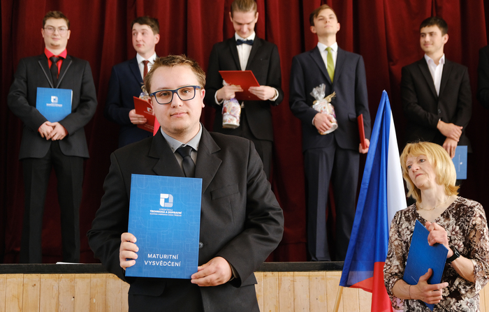 Počty našich studentů se každoročně zvyšují, a tak letos převzalo z rukou svých třídních učitelů maturitní vysvědčení rekordních téměř osmdesát absolventů oborů Elektrotechnika, Mechanik elektrotechnik, Informační technologie, Ekonomika a provoz dopravy a Nábytkářství a design interiéru. Radost nám udělala i skutečnost, že celá pětina z nich prospěla s vyznamenáním.