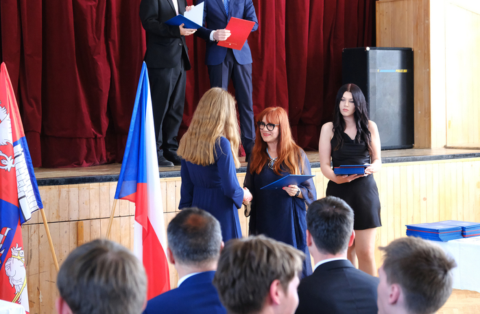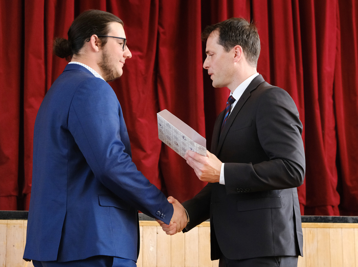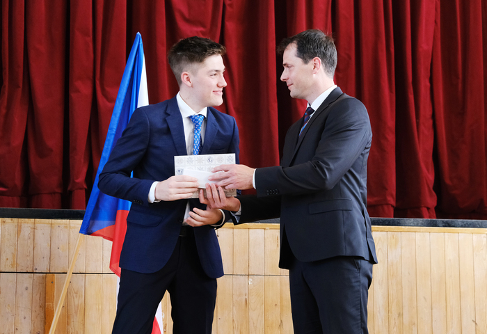 Na závěr slavnostního aktu ocenil ředitel školy, pan Jan Kovář, nejlepší absolventy za vynikající studijní výsledky a reprezentaci školy. Oceněným předal Čestné uznání ředitele školy a dárek.