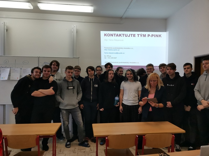 Dne 26. 11. 2021 proběhl workshop pořádaný Pardubickým podnikatelským inkubátorem na téma Můžeš podnikat. Workshop moderovala paní Hana Štěpánová. Třída I32 se aktivně zapojila do diskuzí a v závěru po skupinkách kreativně vymyslela, v čem by mohla podnikat. Myslím, že to bylo pro všechny příjemné oživení výuky. O přestávce se paní Štěpánové představily i stávající JA firmy.