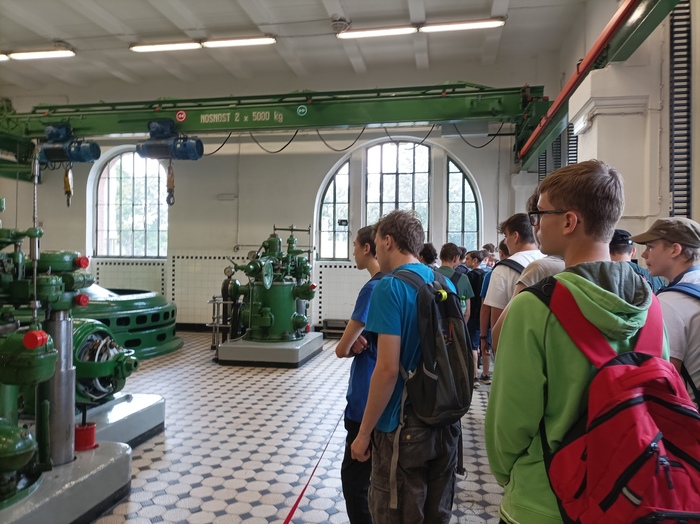 Dále byla na programu prohlídka Vodní elektrárny Hučák, která začala krátkým filmem o možnostech vyrábění elektřiny v dnešní době s důrazem na ekologii. Poté jsme se šli podívat, jak se ekologicky vyráběla energie už před sto lety. Celá secesní budova dýchá historií, o to víc je obdivuhodné, že samotná elektrárna je stále plně funkční.